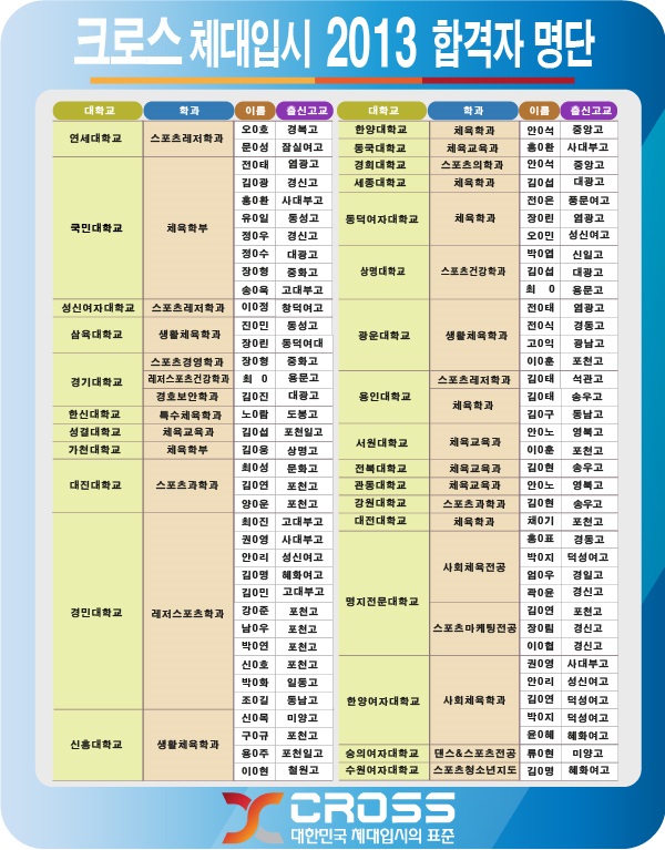 2013 크로스체대입시 합격자명단