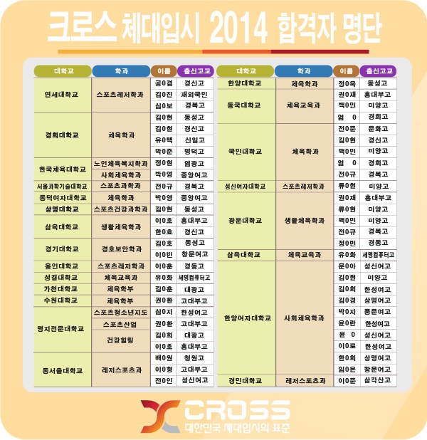2014 크로스체대입시 합격자명단