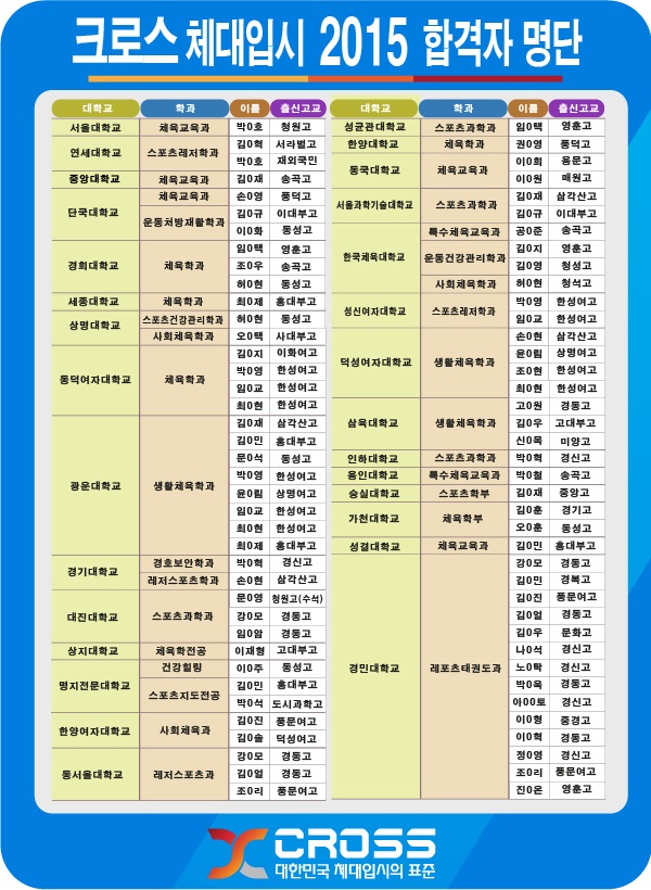 2015 크로스체대입시 합격자명단
