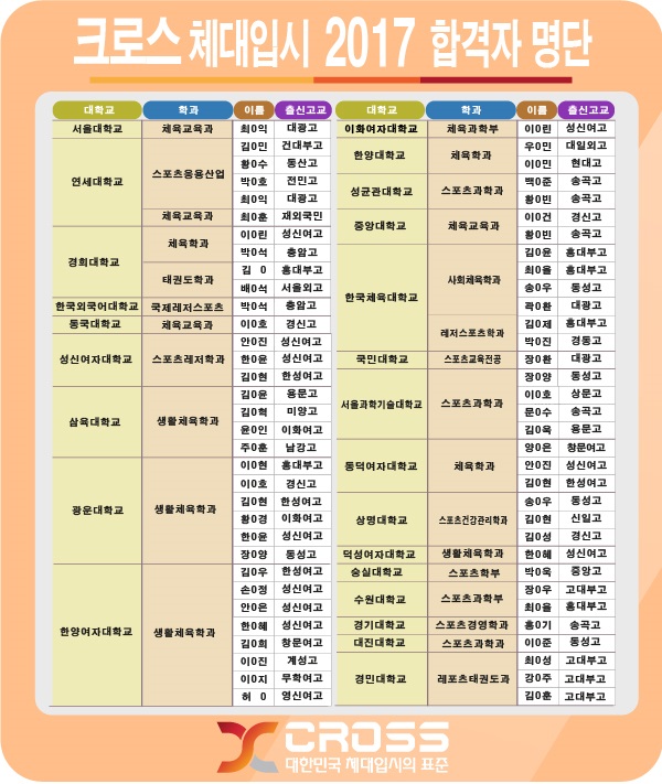 2017 크로스체대입시 합격자명단