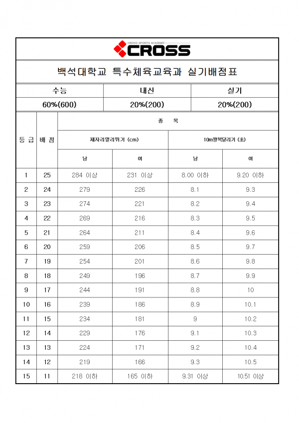 대한민국 체대입시의 표준