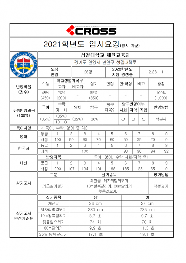 대한민국 체대입시의 표준