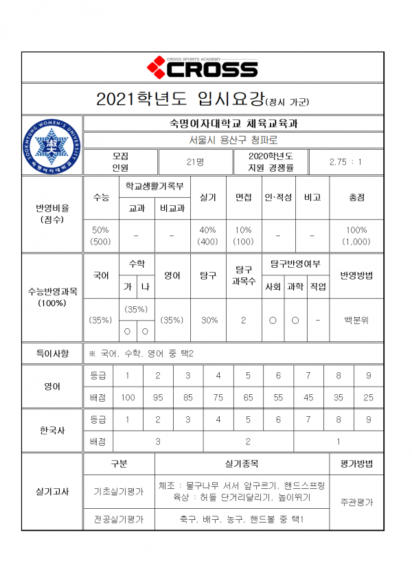 숙명여자대학교 체육교육과