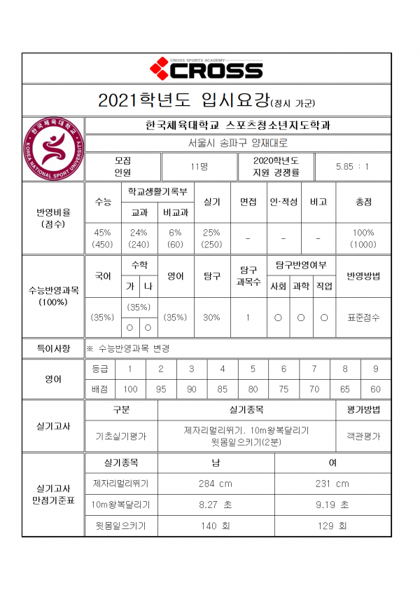 대한민국 체대입시의 표준