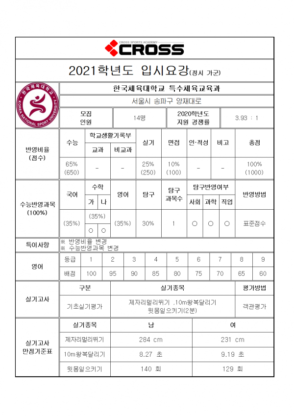 대한민국 체대입시의 표준