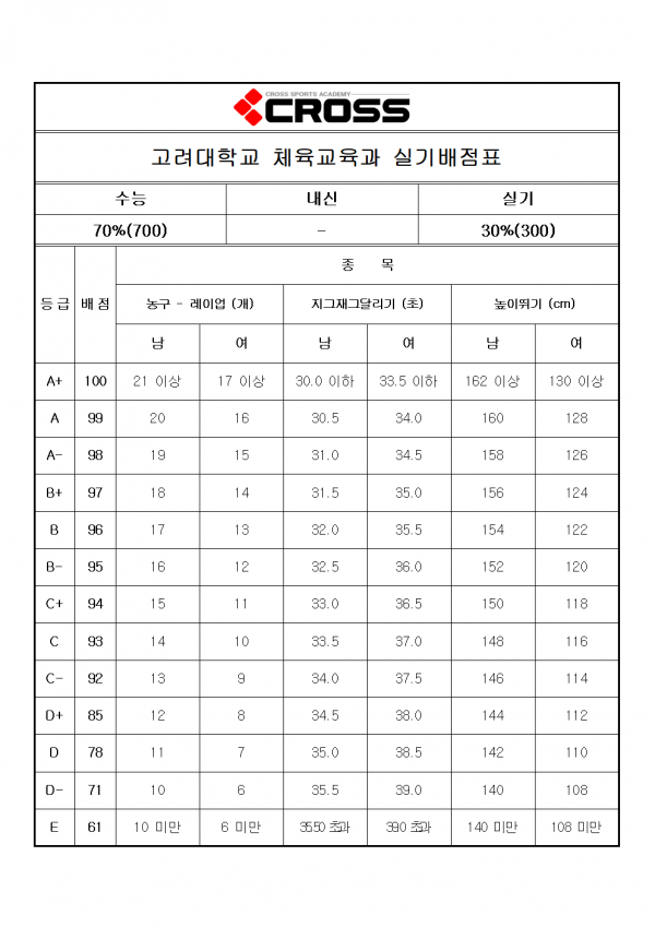 대한민국 체대입시의 표준