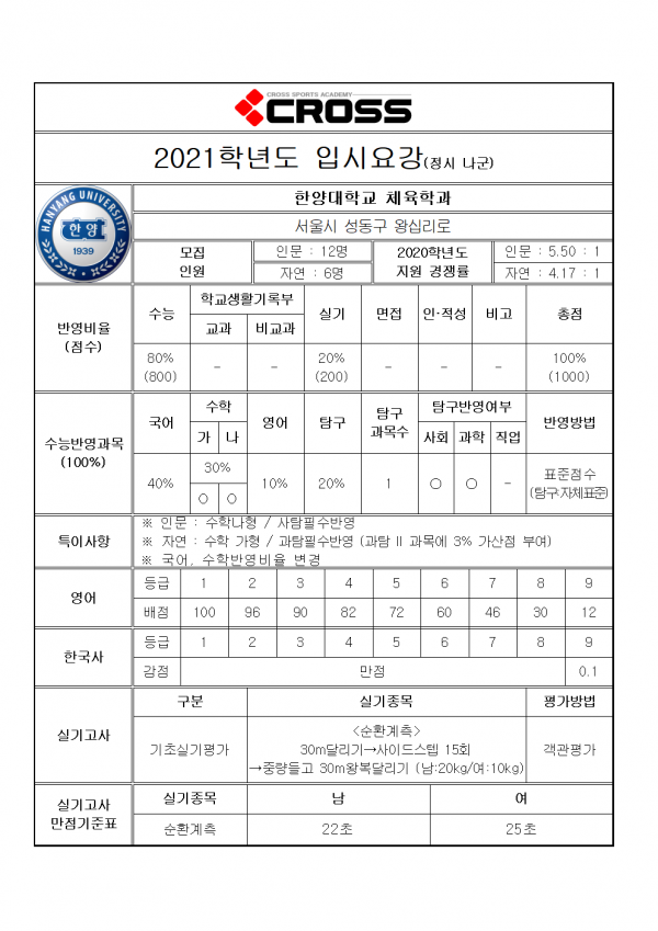 한양대학교 체육학과
