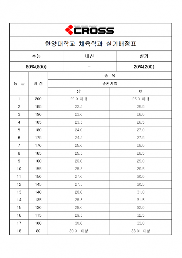 대한민국 체대입시의 표준