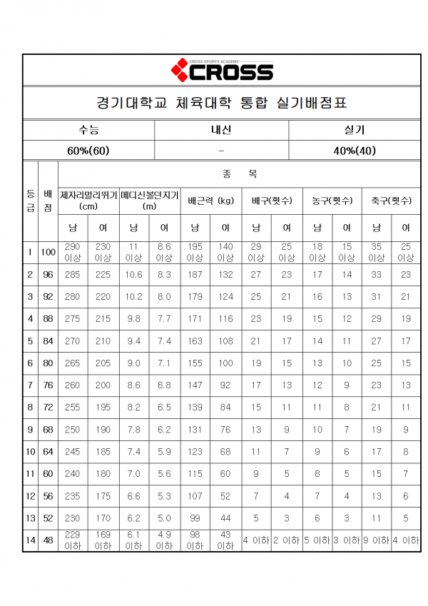 경기대학교 통합배점표