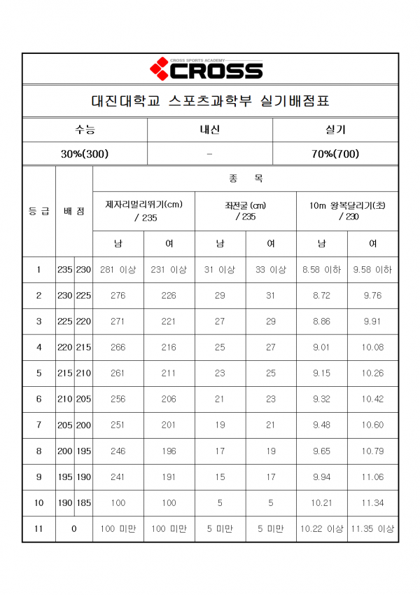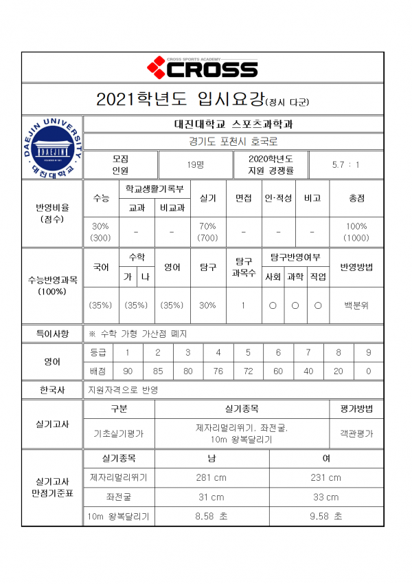 대한민국 체대입시의 표준