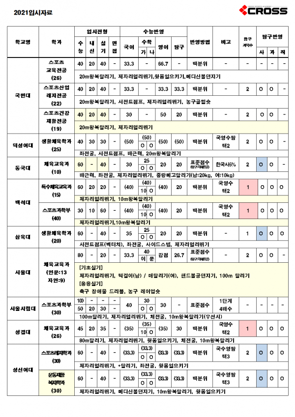 [2021 입시] 정시 가군 주요대학 요약