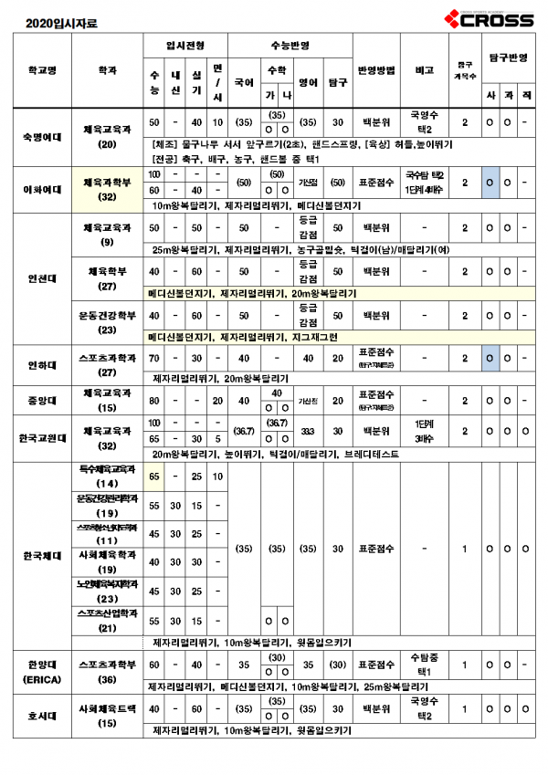 대한민국 체대입시의 표준