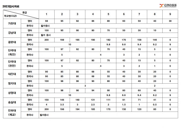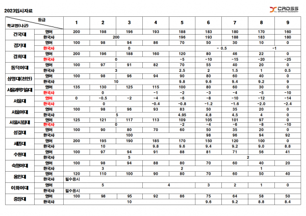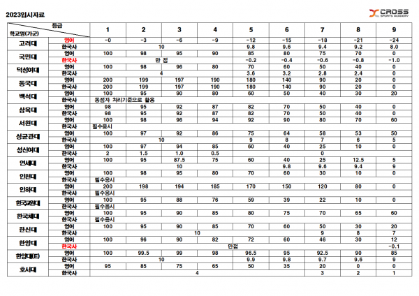 [2023 입시] 정시 영어 및 한국사 반영점수