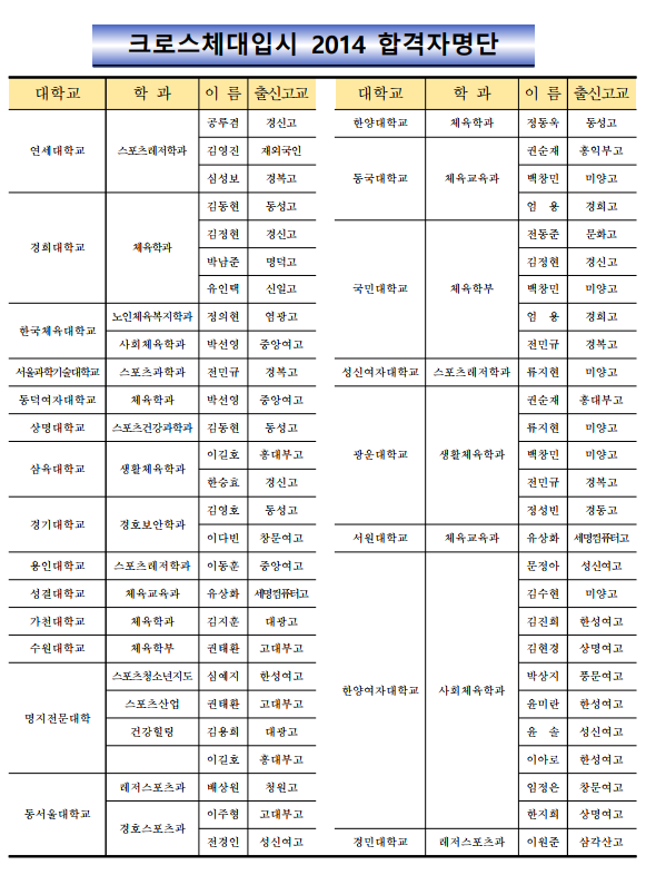 합격자의 출신고와 진학 대학, 학과를 투명하고 정확하게 보여드립니다. 왜 크로스가 그동안 주요대학에 많은 합격자를 배출하는지를...무엇이 실력인지를 저희는 이 명단으로 보여드리겠습니다.